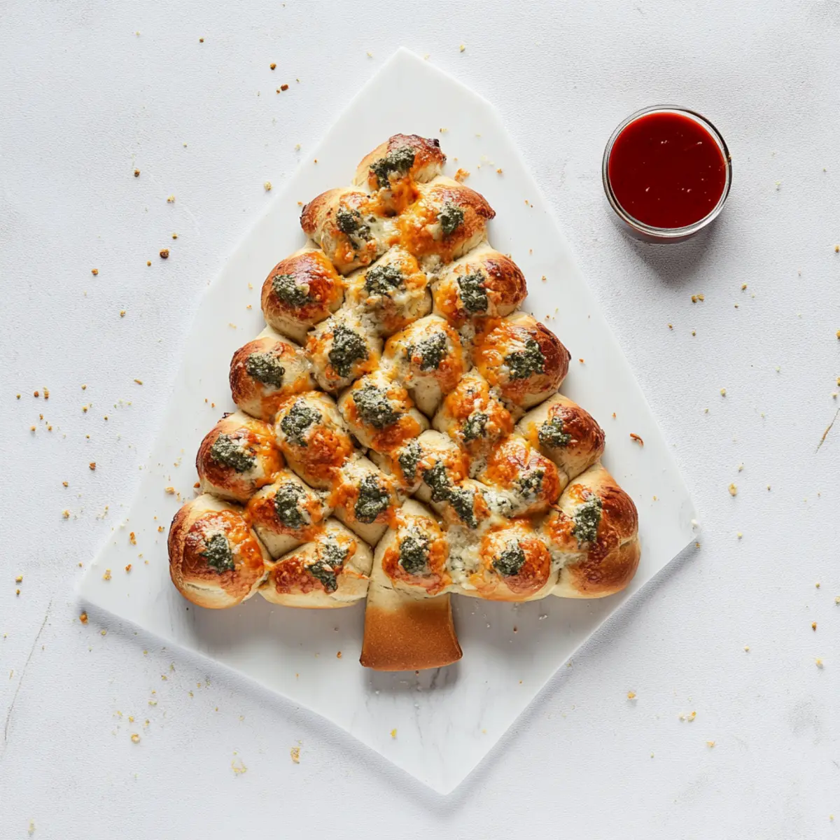 Servi caldo con salsa di pizza sul lato. I tuoi ospiti apprezzeranno il contrasto tra la croccantezza dell’albero e la cremosità della salsa.