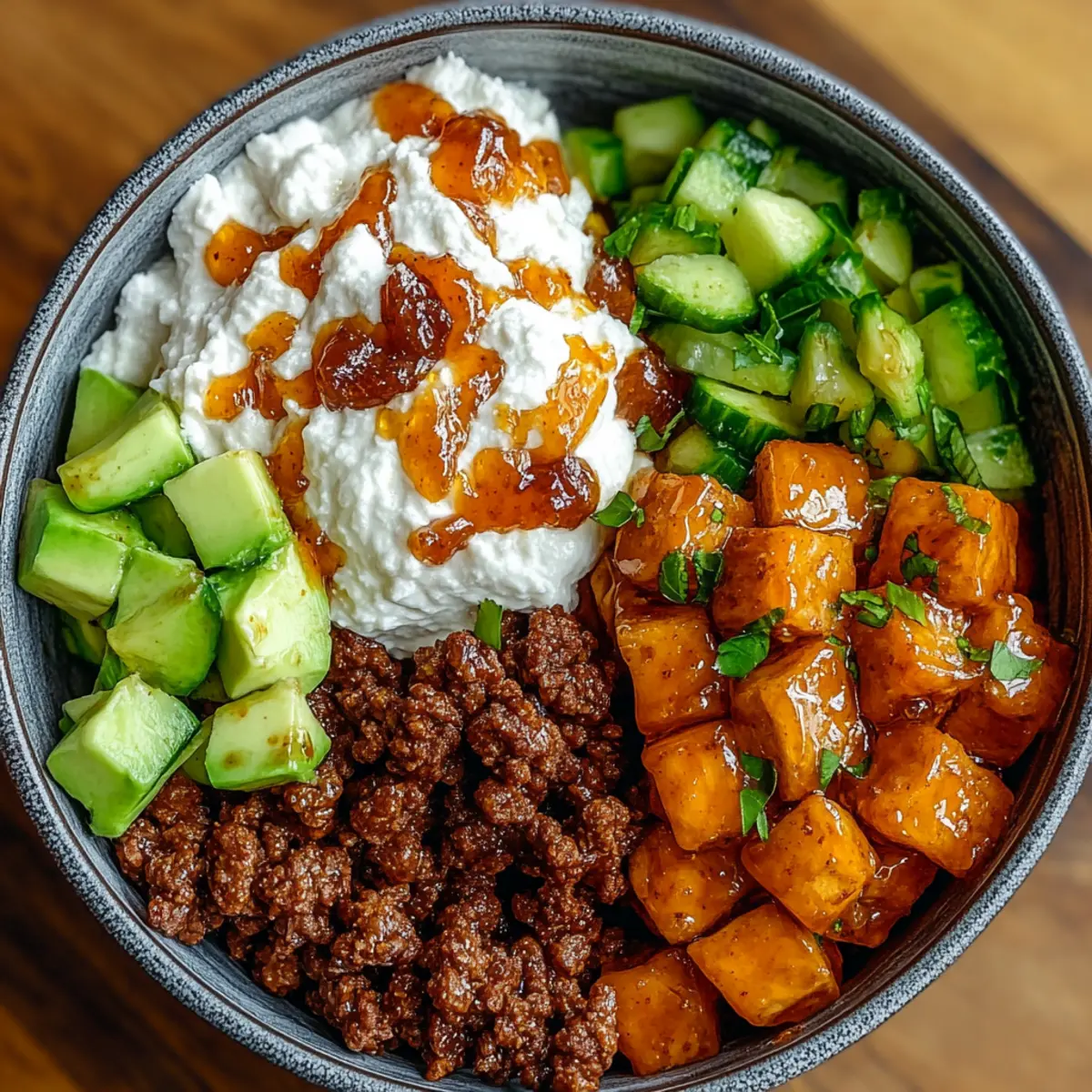 Non c’è nulla di più appagante di un piatto che riesca a soddisfare le nostre papille gustative e, allo stesso tempo, a fornire energia e nutrimento. Oggi vi presento la mia versione del “Bowl di Manzo Macinato con Miele Piccante”, un piatto che combina perfettamente sapori dolci e piccanti in un’unica ciotola colorata. Immaginate il profumo avvolgente della carne macinata rosolata, la dolcezza naturale delle patate dolci caramellate e la cremosità della ricotta, il tutto esaltato da un drizzle di miele piccante che trasforma questo piatto in un’esperienza culinaria unica.