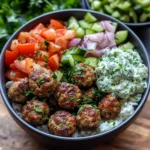 Come fare Ciotola di Polpette Greche con Tzatziki, Riso e Verdure Fresche